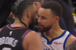 GIF-库里与狄龙、杰伦·格林拥抱致意!